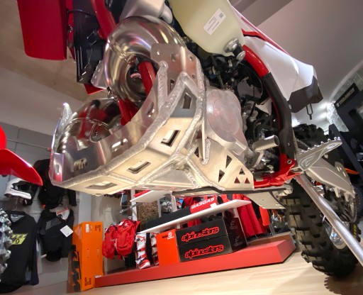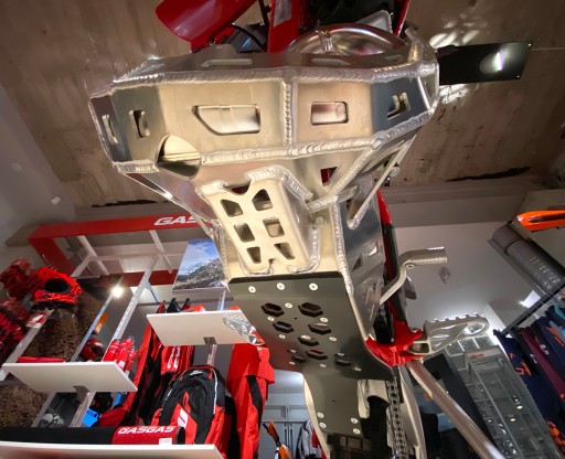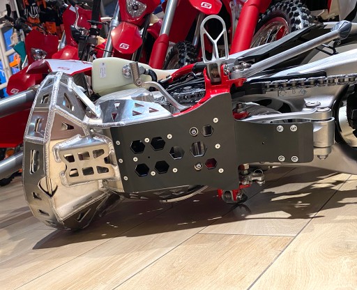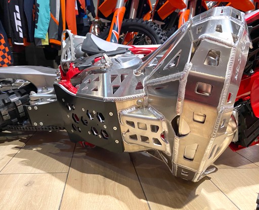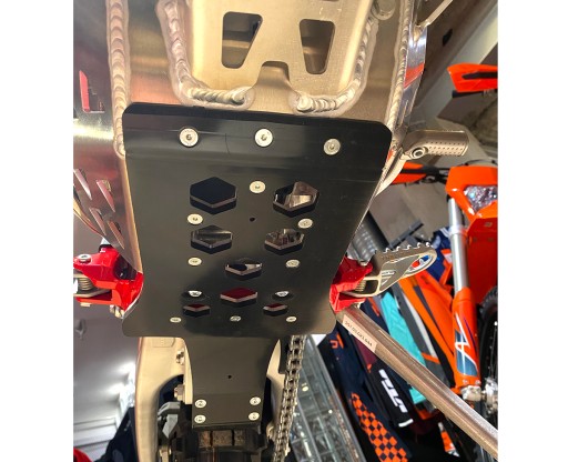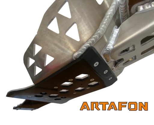 Dodatkowa warstwa z płyty HDPE 6mm z osłoną kiwaczki, 6 punktów mocujących – 2 stalowe uchwyty z tyłu, uchwyt aluminiowy na dwie śruby z przodu i dwie śruby mocujące do gniazd w ramie.