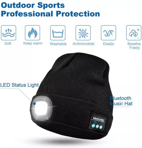 Czapka z wbudowanymi słuchawkami oraz światłem led dzięki której uzyskasz komfort podczas zimnych dni słuchając swojej ulubionej muzyki oraz podświetlając drogę zimowymi wieczorami. Łączysz czapkę z każdym urządzeniem za pomocą opcji Bluetooth.