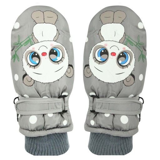 Piękne, ciepłe, jednopalczaste rękawiczki dziecięce w kolorze szarym z motywem uroczej pandy. Od wewnątrz wypełnione mięciutkim misiem. Regulacja w nadgarstku ułatwia precyzyjne dopasowanie. Antypoślizgowy materiał na wewnętrznej stronie dłoni. Ściągacz zabezpieczający. Rękawiczki można spiąć razem.