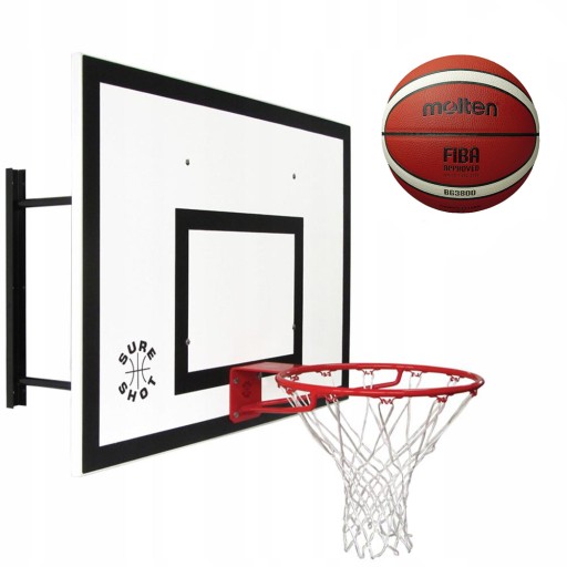 ZESTAW DO KOSZA TABLICA 120x90 cm+OBRĘCZ+UCHWYT NAŚCIENNY 60 cm + PIŁKA MOLTEN
