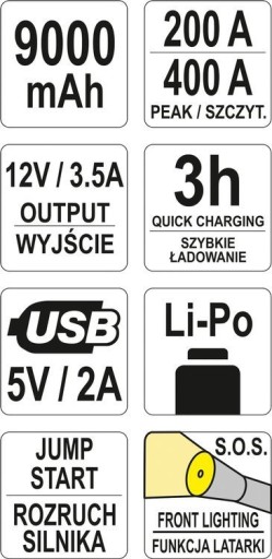 URZĄDZENIE ROZRUCHOWE POWER BANK 9000MAH YATO