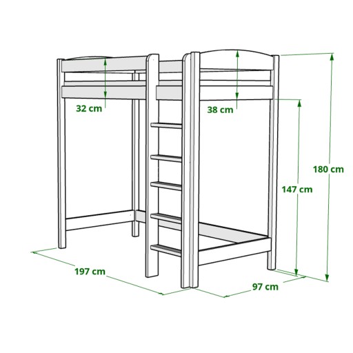 ANTRESOLA z łukiem – to łóżko, które w oryginalny sposób uzupełni aranżację pokoju dla dziecka. Model cechuje wytrzymała oraz stabilna konstrukcja. Antresola wyposażona jest w uniwersalną drabinkę, którą można ulokować z dowolnej strony na etapie montażu. Wolną przestrzeń pod łóżkiem można zagospodarować, umieszczając biurko, komodę bądź regał na książki zaoszczędzając tym samym miejsce w pokoju. Długa boczna barierka i delikatnie zaokrąglone krawędzie zapewniają bezpieczeństwo, zarówno w dzień jak i w nocy. Drewno użyte do produkcji posiada Certyfikat FSC.
