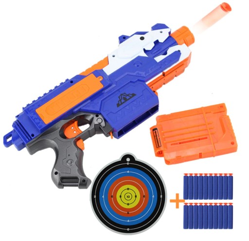 Karabin / wyrzutnia zagwarantuje świetną zabawę, jak i pomoże rozwinąć koordynację ręka-oko. Zabawka może zachwycić również fanów gier komputerowych, którzy będą mogli przenieść swoje potyczki do prawdziwego świata a przy okazji zaczerpnąć więcej ruchu, którego gra przed komputerem zdecydowanie nam nie dostarczy. Obsługa karabinu, szczególnie ładowanie magazynka, wpływa pozytywnie na motorykę palców.