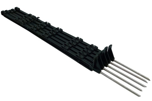 Uniwersalny palik z uchwytami do zamocowania taśmy, linki, drutu, plecionki o szerokości do 2 cm.