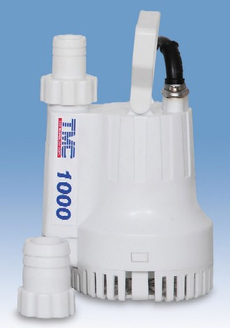 TMC 03305 - 1000gph to elektryczna pompa zęzowa o wydajności do 63 litrów na minutę i możliwości podnoszenia wody na wysokość 2,4 metrów. Obudowa wykonana z mocnego tworzywa sztucznego jest całkowicie uszczelniona i umożliwia bezpieczną pracę pompy w pełnym zanurzeniu. Podstawa pompy jest łatwa do zdemontowania, co ułatwia dostęp do otworu zasysającego wodę. Wyposażona w cichy, długowieczny silnik oraz w wirnik pracujący bez nadmiernej wibracji, a także w system eliminujący zapowietrzanie. Znajduje zastosowanie w łodziach i na jachtach, a także w medycynie i w laboratoriach oraz w solarnych systemach wodnych. Uruchamianie pompy nie jest automatyczne i wymaga zastosowania dodatkowego włącznika elektrycznego lub włącznika automatycznego z pływakiem.