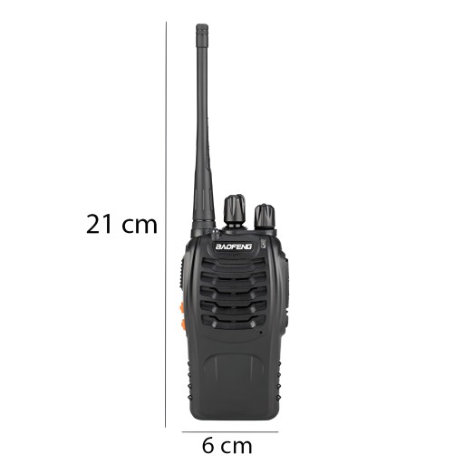 BF-888S to profesjonalne podręczne radiotelefony. Dzięki wysokiej mocy gwarantują zasięg aż do 8 km w otwartym terenie. Pełen zakres częstotliwości urządzenia to 400-470MHz. Produkt znajdzie swoje zastosowanie w firmach oraz podczas Twoich rodzinnych podróży. Radiotelefon BAOFENG posiada, aż 16 programowanych kanałów. Bateria litowo-jonowa o wysokiej żywotności pozwala na całodniowe użytkowanie produktu.