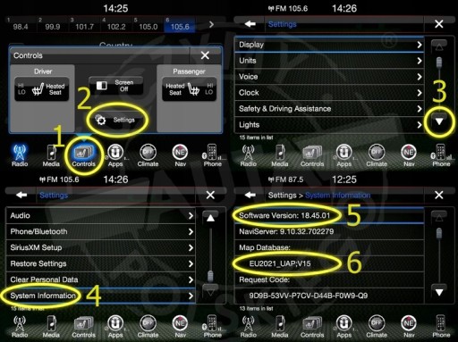 Aby sprawdzić jaka jest wersja oprogramowania mapy należy postępować w/g podpunktów jak na zdjęciu:
