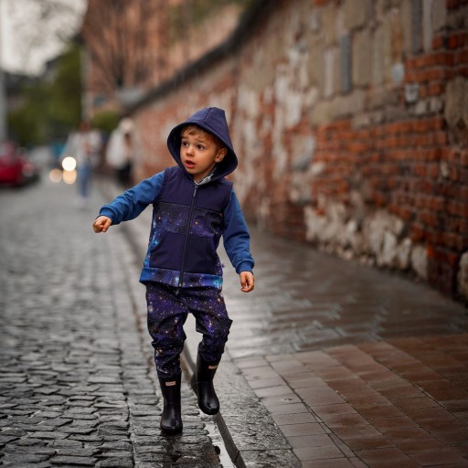 Wygodne i bardzo praktyczne spodnie uszyte z wiatroodpornej tkaniny zwanej softshell. Materiał jest szczelny, ale także oddychający, więc maluch nie będzie się przegrzewał.