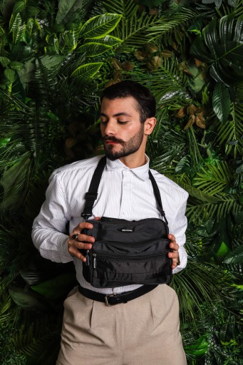 - Torba posiada mocny, parciany, dopinany pasek, dzięki któremu można ją nosić również na ramieniu i przez ramię