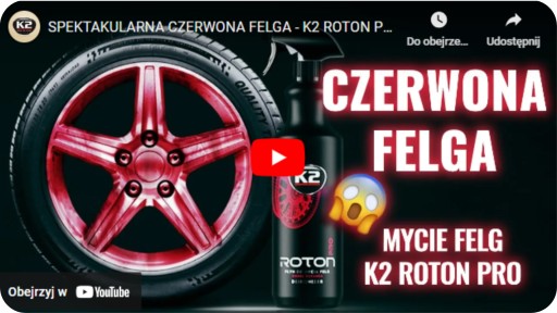 K2 Roton Pro 1L to żel do mycia felg, który zaskakuje swoją unikatową funkcją zmiany koloru na czerwony w kontakcie z brudem.