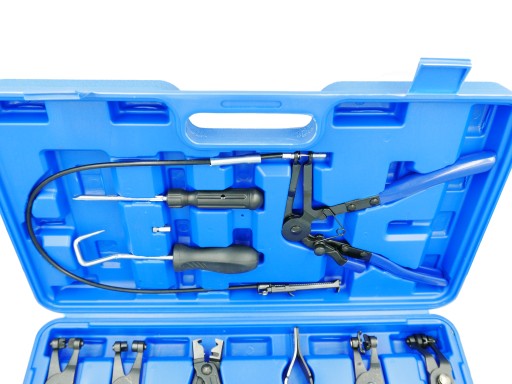Zestaw szczypiec do różnego rodzaju opasek zaciskowych i innych. Pozwala na wygodną pracę w ciasno zabudowanej komorze silnikowej oraz w trudno dostępnych miejscach układu chłodzenia, paliwowego i klimatyzacji a także wielu innych. Zapakowany w wygodną, plastikową walizkę, która pozawala utrzymać porządek jak i dzięki niej łatwo transportować zestaw. Dobrze sprawdzi się w serwisie samochodowym jak i w przydomowym garażu.