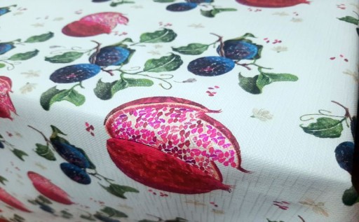 Kolor / wzór: Na białym tle owoce granatu oraz borówki