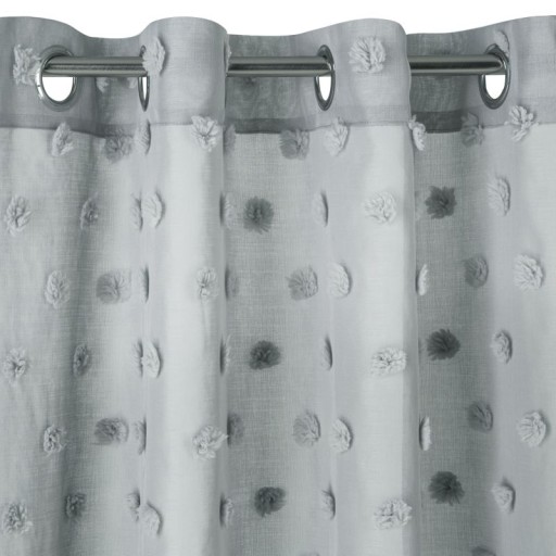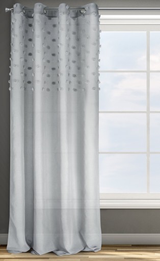 Lekka i zwiewna zasłona gotowa udekorowana jest na całej powierzchni równomiernie rozmieszczonymi pomponikami. Bardzo łatwa w praniu, lekko sie prasuje. ,
