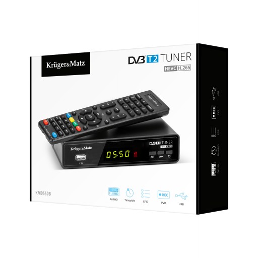 Twój stary dekoder telewizji naziemnej odmawia posłuszeństwa i zastanawiasz się jaki tuner DVBT2/HEVC kupić? Wybierz model KM0550 marki Kruger&Matz z procesorem GX6702S5, który umożliwia odbiór kanałów cyfrowych w standardzie DVBT2/HEVC. Co więcej, tuner dvb t Kruger&Matz obsługuje wiele formatów, m.in. H.265 HEVC, dzięki czemu gwarantuje prawidłowe działanie po wprowadzeniu zmian standardu kodowania.