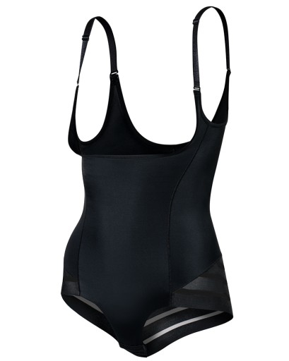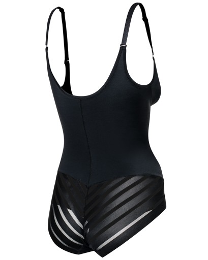 Efektowne body wyszczuplające, uszyte z regulującej poziom wilgoci, nowoczesnej dzianiny, która pomaga wygładzić nierówności.