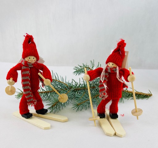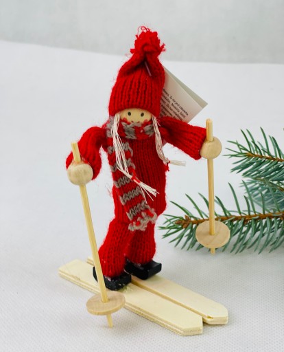 DREWNIANA, ŚWIĄTECZNA FIGURKA NA NARTACH