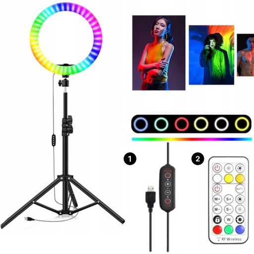 - ✔️ Lampa pierścieniowa RGB 30 cm z pilotem na kablu