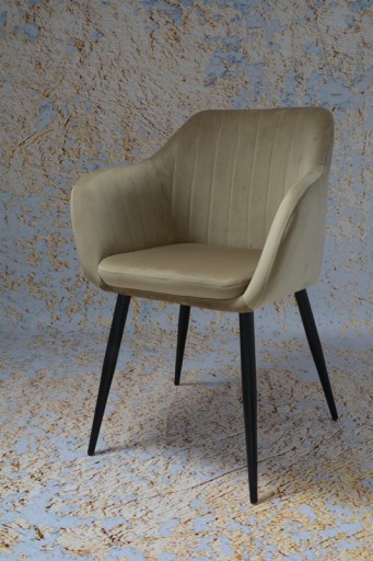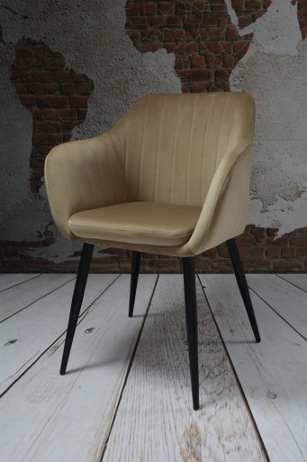 Siedzisko oraz oparcie wykonane jest z materiału welur w kolorze beżowym .