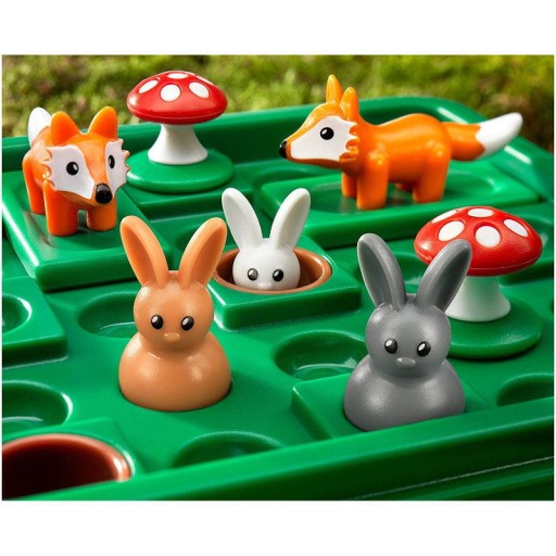 Czy pomożesz królikom wskoczyć w bezpieczne miejsce? Użyj innych królików, grzybów, a nawet poruszających się lisów, aby skakać i chować króliki w ich norach. Zadanie polega na przechytrzeniu lisów i doprowadzanie królików od bezpiecznych norek. Króliki i lisy poruszają się tylko wg wyznaczonych reguł, a muchomory stoją im na przeszkodzie. Świetna kompaktowa gra podróżna zawierająca 60 wyzwań.