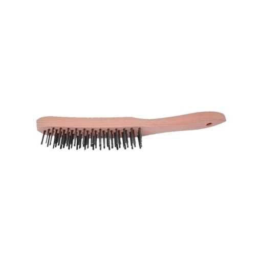 Szczotka druciana czterorzędowa wykonana z ocynkowanego drutu stalowego osadzonego w drewnianym korpusie.