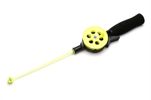 Seria wędek podlodowych z tworzywa sztucznego w komplecie z zintegrowanym kołowrotkiem.