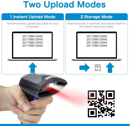 Tryb przechowywania: Cały zeskanowany kod kreskowy zostanie zapisany bezpośrednio we wbudowanej pamięci skanera. Możesz zbiorczo przesyłać dane do urządzenia.