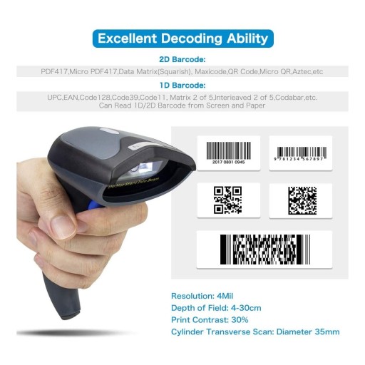 - Profesjonalny skaner kodów kresowych 1D, 2D QR Aztec MaxiCode Micro qR, PDF417, Data Matrix