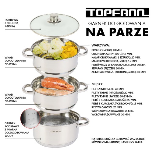 Pozwala na przygotowanie zdrowej żywności, umożliwiając gotowanie z małą ilością wody, co minimalizuje utratę witamin oraz walorów smakowych.