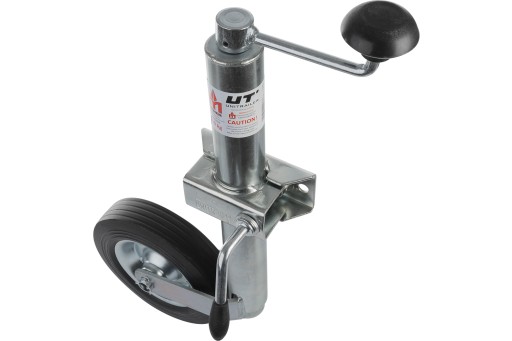 Solidne stalowe koło podporowe z ocynkiem. Wyposażone w łożysko oporowe ułatwiające rozruch i pełną oponę z gumy. Korba logowana symbolem Unitrailer. Obejma koła podporowego Unitrailer została wyprodukowana z wytrzymałej stali. Wyposażona w docisk śrubowy pozwoli na bezpieczne użytkowanie koła podporowego przyczepy. Do montażu obejmy wystarczą dwie śruby o średnicy 10 mm.