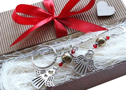 ZESTAW PREZENTOWY: ZAKŁADKA + BRELOK Z ANIOŁAMI