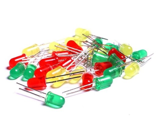 Zestaw 30 diod LED. Trzy kolory diod: czerwony, zielony, żółty. Po 10 sztuk z każdego koloru diod o średnicy soczewki 5mm.Diody mogą być wykorzystywane w wielu projektach DIY, Arduino i wielu innych.