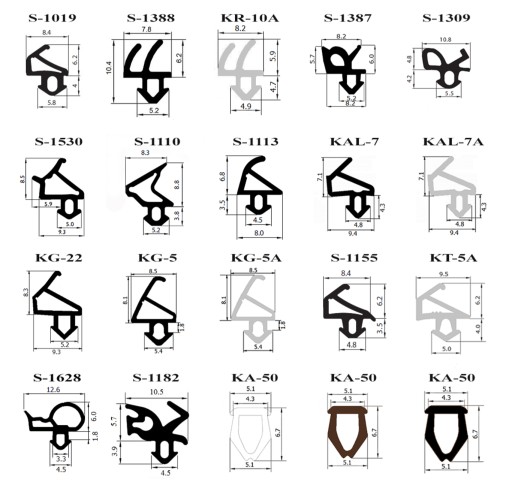 Najprostszym i najszybszym sposobem doboru uszczelki jest wyciągnięcie starej uszczelki z okna i porównanie jej z naszymi wzorami uszczelek dostępnymi na aukcji. W zależności od producenta okien uszczelka na ramie i skrzydle może być taka sama lub różna, więc przy doborze uszczelki zawsze wyciągamy kawałek uszczelki z ramy jak i skrzydła. Większość uszczelek ma charakterystyczny wygląd dlatego też uszczelkę można dobrać na podstawie jej wyglądu. Jeżeli natomiast nie mamy pewności co do rodzaju uszczelki, należy zmierzyć szerokość i wysokość „dzióbka wciskowego” który wciskany jest w rowek montażowy oraz wysokość i szerokość „profilu górnego” uszczelki. tak jak na zdjęciu obok.
