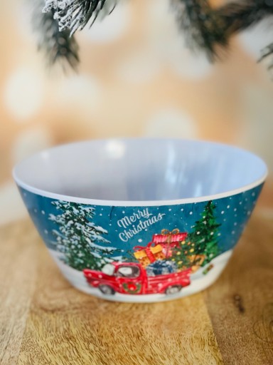 Porządna miseczka z melaminy to obowiązkowy element każdego domu. Pozwala w łatwy sposób serwować potrawy lub przekąski. Niewątpliwą zaletą są jej walory estetyczne. Prezentowany model jest bardzo świąteczny. Miseczka wykonana jest z melaminy co gwarantuje jego wytrzymałość.