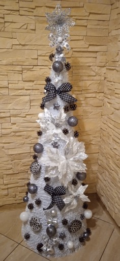 Wybieracie Państwo ogólną kolorystykę choinek która może się różnić od pokazanych zdjęć (proszę pamiętać iż jest to praca ręczna- artystyczna, a nie maszynowa! Nie otrzymacie Państwo choinki identycznej jak na zdjęciu lecz bardzo podobną!). Ogólnie zachowujemy kolorystkę choinki np. srebrno- czerwona.