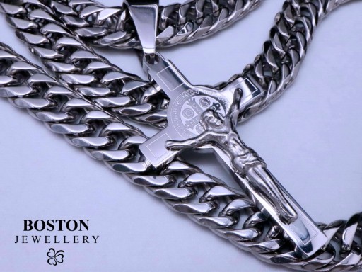 ТОЛСТАЯ СЕРЕБРЯНАЯ ЦЕПЬ С КРЕСТОМ 316L ПРЕМИУМ