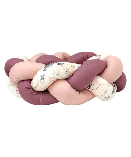 Ręcznie wykonany z najwyższej jakości tkaniny bawełnianej ochraniacz do łóżeczka warkocz marki KOELL chroni i amortyzuje przed twardymi szczebelkami łóżeczka, dzięki czemu zapewnia bezpieczny i spokojny sen dziecku. Ochraniacz firmy KOELL to gwarancja najwyższej jakości. Produkty szyjemy 100% ręcznie, estetycznie i z dbałością o każdy szczegół dzięki czemu może on posłużyć na wiele lat. Dopracowujemy wszelkie detale dla idealnego efektu. Szyjemy z trwałych i specjalistycznych materiałów. Do każdego ochraniacza wszyte są tasiemki umożliwiające przywiązanie go do łóżeczka. Można go uformować jak gniazdko i ułożyć w nim dziecko, a później, kiedy dziecko próbuje samodzielnie siadać, zapewnia asekurację Maluszka. Ochraniacz może pełnić również funkcję poduszki lub służyć jako oryginalny element dekoracyjny pokoju dziecięcego.