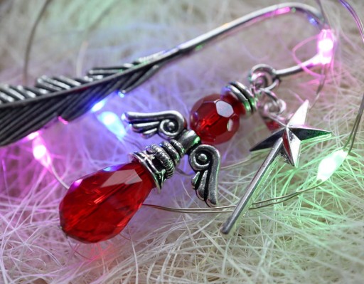 Ozdobą zakładki jest świąteczny anioł z magiczną różdżką.