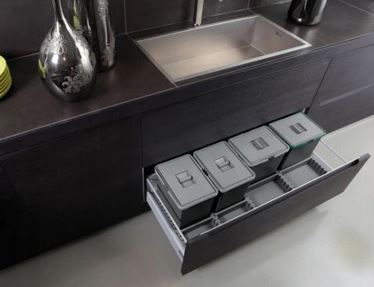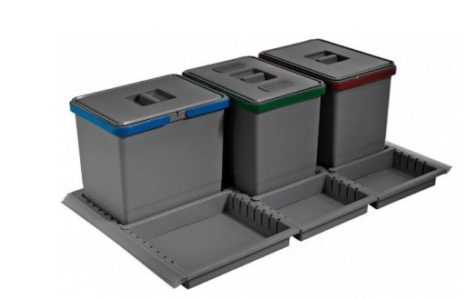Sortownik na śmieci METROPOLIS PTC28 09050 5F wyposażony w 3 kosze - pojemniki na odpady to produkt firmy Elletipi przeznaczony do zabudowy w szufladach kuchennych o minimalnej szerokości 90 cm.