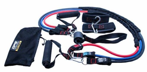 POWER-SYSTEM ULTIMATE EXPANDER SET to zestaw składający się z 3 tubingowych gum przymocowanych za pomocą wytrzymałych metalowych klipsów.