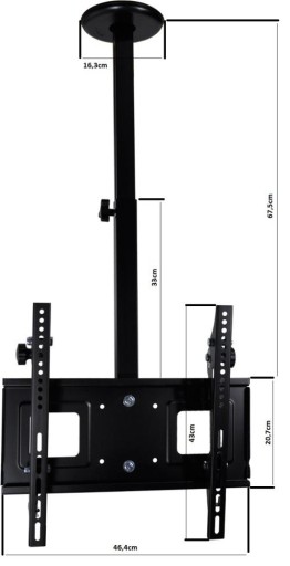 Solidny uchwyt sufitowy z regulacją do montażu telewizorów LCD LED i plazmowych oraz monitorów różnych marek o wadze do 40 kg i o wymiarach przekątnej ekranu od 23” do 50”.