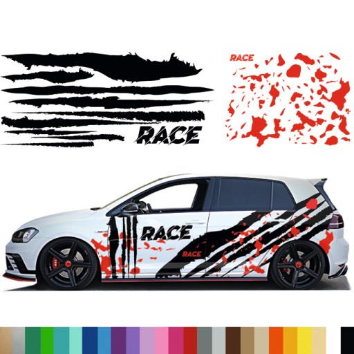 2 НАКЛЕЙКИ Автомобильная графика МОТИВ ПЯТНА ПОЛОСКИ RACE Racing Moro 94x690
