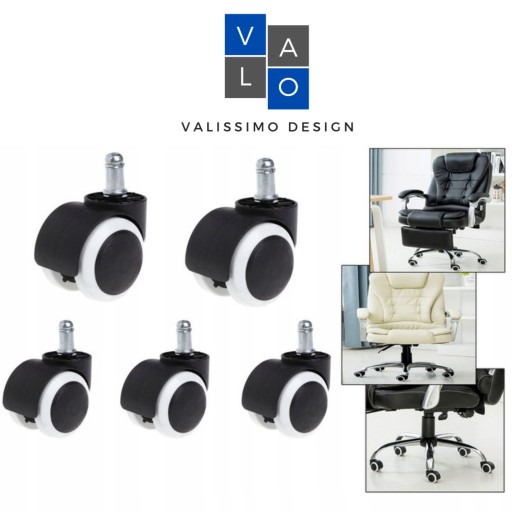 Kółka gumowane kauczukowe do foteli obrotowych, biurowych, taboretów fryzjerskich, kosmetycznych
