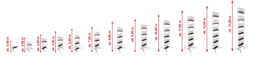 - Optymalna stabilność zapewniona przez wytrzymałe stalowe stabilizatory wymagane od 3,80 m wysokości roboczej