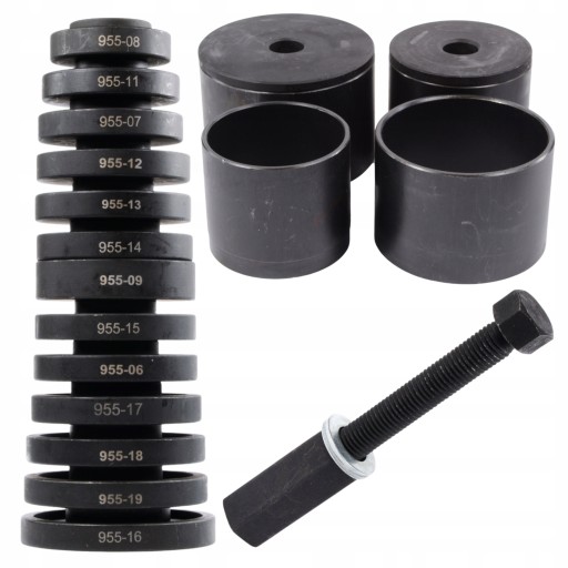 Uniwersalny zestaw do demontażu łożysk kół i tulei z zastosowaniem do większości znanych marek samochodów.