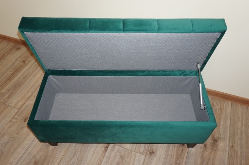 Pufę - ławeczkę podtrzymuje siłownik gazowy co powoduje, że siedzisko delikatnie otwiera się i nie opada jak jest otwarte.