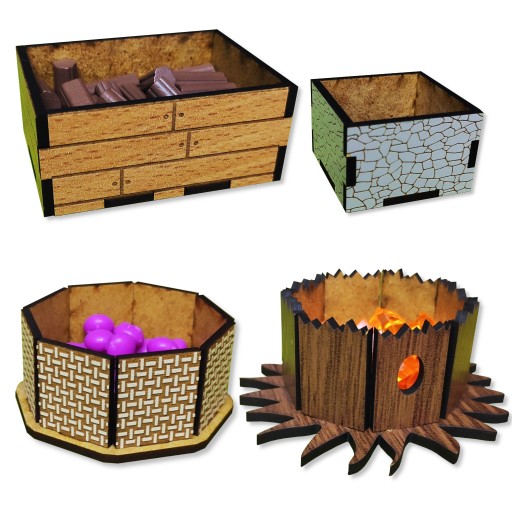 Komplet zawiera 4 pojemniki na surowce, które znajdują się w podstawowej wersji gry.