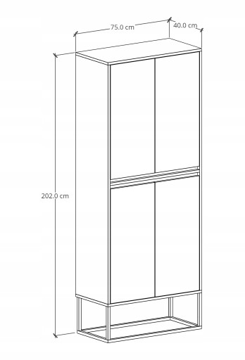 Regał łazienkowy ODIS OS2 o wymiarach: Szerokość 75 cm, Wysokość 202 cm, Głębokość 40 cm