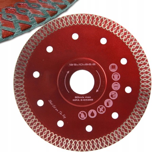 ✔️ Tarcza zalecana do cięcia twardych materiałów: granitu, gresu rustykalnego, klinkieru, materiałów ogniotrwałych, łupków i gresu porcelanowego, konglomeraty kwarcowe.