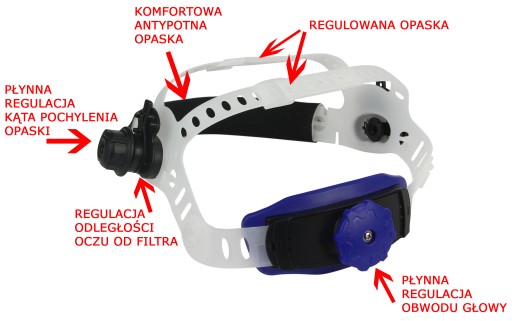 Przyłbica jest wyposażona w 3 pokrętła do samodzielnej manualnej regulacji parametrów pracy.