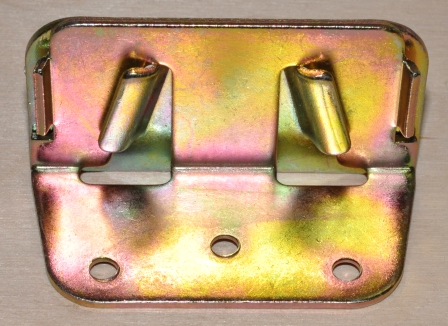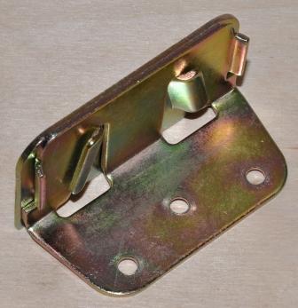 Opis: specjalistyczny łącznik środkowy do łóżek. Łącznik stosowany jest do montażu listew środkowych w łóżkach, podpierających materac. Łącznik wykorzystywany jest do tworzenia mocnych i sztywnych połączeń a zarazem dający możliwość rozłożenia łóżka. Łącznik składa się z dwóch elementów, z których płaski przykręcany jest do konstrukcji łóżka a kątowy do deski podtrzymującej materac łóżka. Kątowy łącznik łączy się z płaskim poprzez nasunięcie. Pokrycie cynk z żółtą pasywacją.